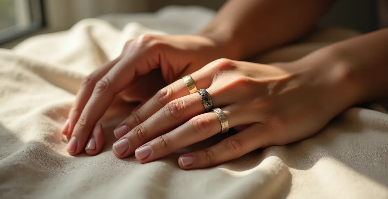 Cependant, cette approche se heurte rapidement à une limite. Elle traite la bague comme un simple objet décoratif, en oubliant sa fonction première : être un véhicule de sens. Et si la véritable question n’était pas « quelle bague choisir ? », mais plutôt « quel message unique voulons-nous faire passer ? ». La bague d’engagement, qu’il soit amical ou amoureux, n’est pas un produit de consommation ; c’est un langage, une forme de grammaire symbolique où chaque choix est un mot. Le doigt qui la porte, la finition du métal, la nature de la gravure, sa masse même… tout participe à la création d’une phrase silencieuse, comprise de vous seuls.