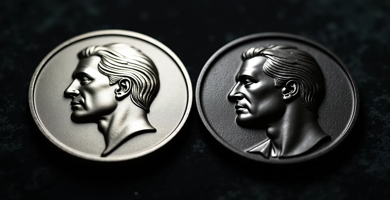 Le choix du métal n’est pas anodin, car sa couleur et sa capacité à réfléchir la lumière (sa réflectivité) vont directement influencer la perception de la gravure. Un même portrait gravé n’aura pas le même aspect sur de l’argent poli, de l’or jaune ou de l’acier brossé. Il ne s’agit pas de « meilleur » métal dans l’absolu, mais du meilleur accord entre le métal et l’effet visuel que vous recherchez. Pour un rendu brillant par percussion diamant, un métal très réflectif comme l’argent 925 ou l’or poli sera idéal, car il maximisera le jeu de lumière sur les facettes créées.